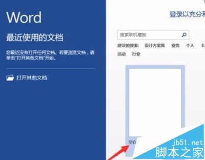2、然后鼠标左键双击计算机桌面Word2016程序图标,将其打开运行。在打开的Word2013程序窗口,点击“空白文档”选项,新建一个空白Word文档。