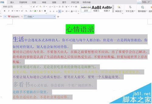 1、打开一篇文档,选中想要制作倒影效果的文字。如图所示: