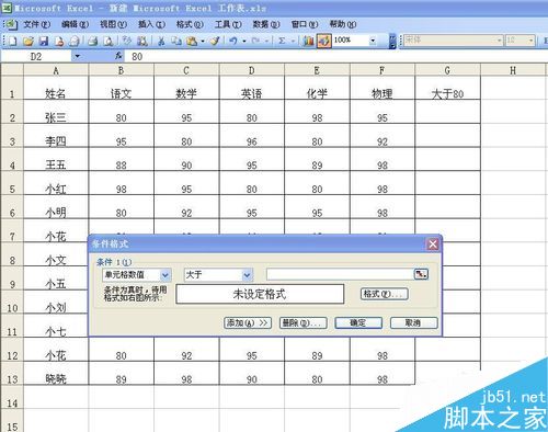 3、单击“条件格式”按钮后会弹出如图对话框,这时我们单击“介于”后方的小倒三角形。