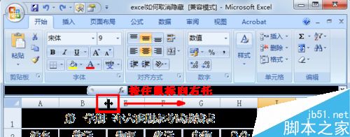 1、将鼠标放在列标签被隐藏列的中间,当鼠标变成如图可拖动的双箭头时按住向右拖动。
