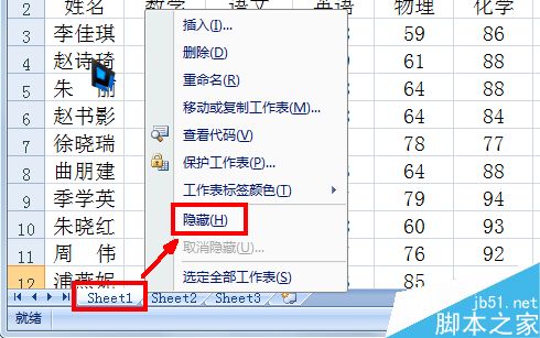 1、在左下角某一工作表上右击鼠标,然后选择隐藏。