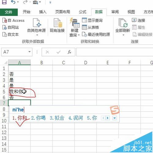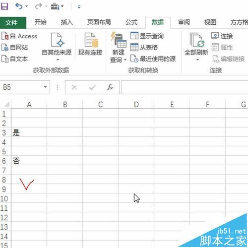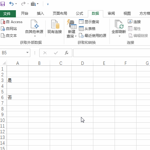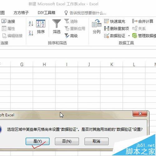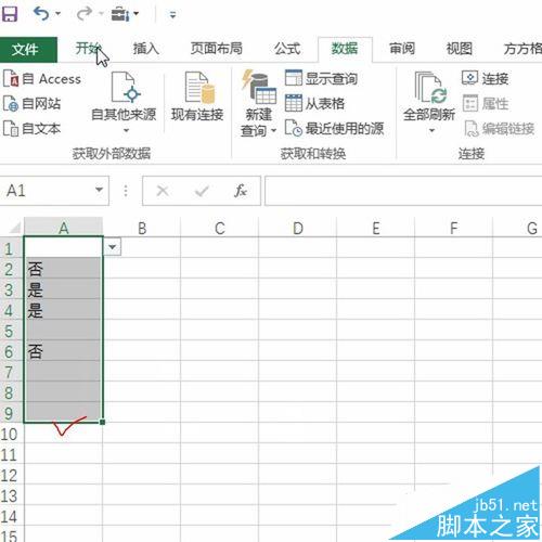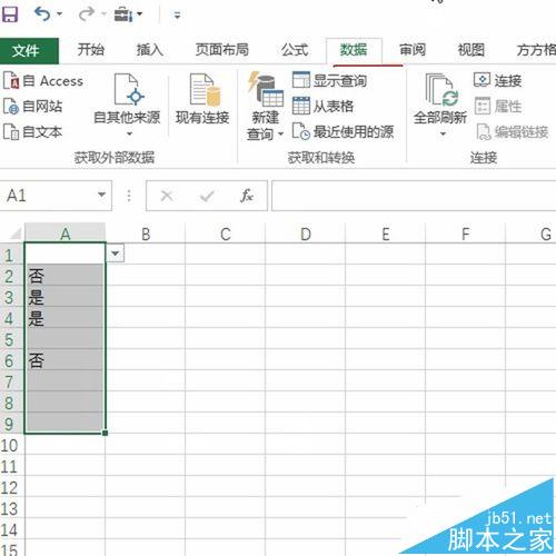 1、首先打开数据表格,发现单元格设定了数据有效性,只能输入是或者否,如下图所示:
