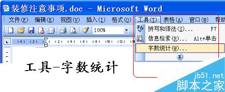 在工具下拉菜单中,选择字数统计,统计信息就弹出来了,如下图所示。