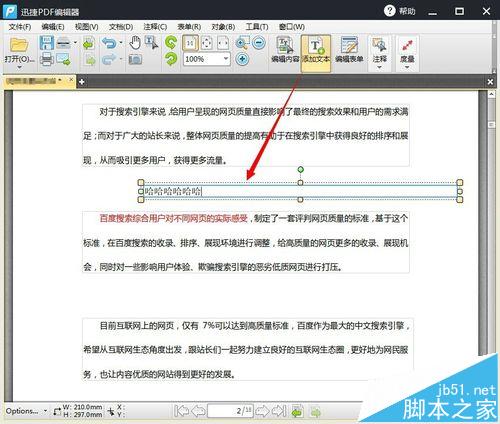 4、点击添加文本按钮,可以在页面中插入文本框,输入文本内容。