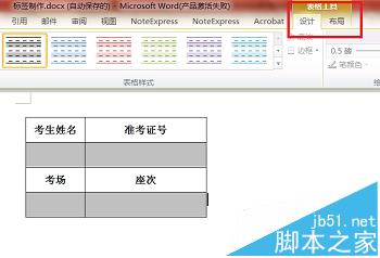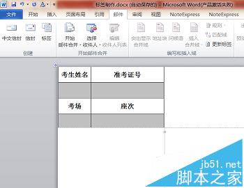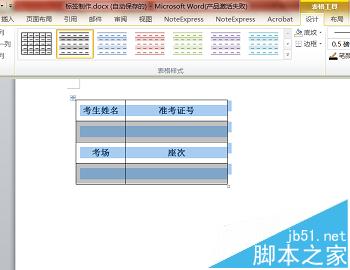 1、首先打开一个空白Word,在其中输入我们想要展现的标题,形式可以多样,在此我以表格形式为例,输入考生姓名、准考证号、考场、座次,其他不需要的信息不输入,表格格式可以用表格工具自行设计。如下图所示。表格制作好后选中刚刚编辑好的表格并复制备用。