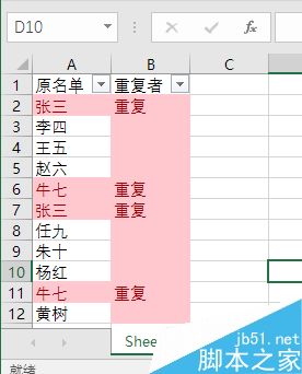 筛选之后我们看到,窗口中就只剩下重复的项目,这下就一目了然了。