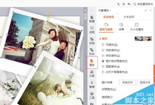 5、找到图片与纹理填充,这时会看到右边的缩略图。