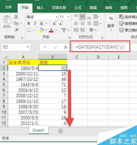 用出生年月快速计算年龄