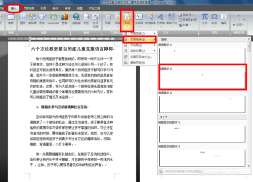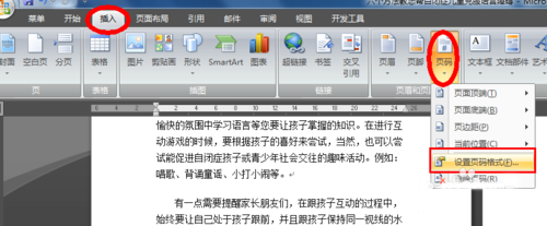 2、设置完第一步,然后就剩下页码设置了,如下图三。插入→页码→页面地端→选择你想要的页码样式就好。