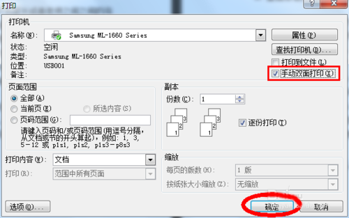 5、最后就剩下打印了,Ctrl+p出现打印页面,如图七,选择手动双面打印,确定即可。