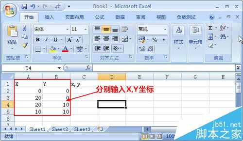 1、启动EXCEL,打开提取的坐标表格,或者在新表中分两列输入X,Y坐标,如下图所示。
