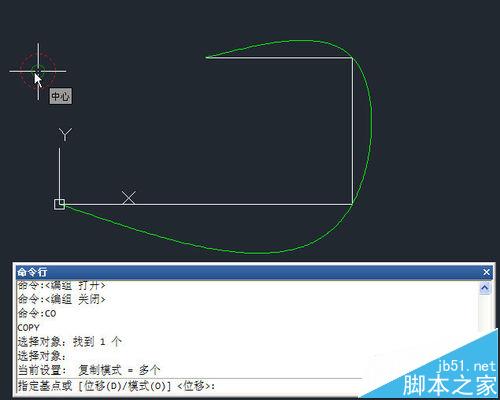 2、输入CO(COPY),回车,执行复制命令,选择圆后回车,提示指定基点时捕捉圆的圆心点,如下图所示。