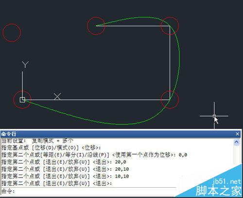 3、确定基点后,软件会提示指定位移点,这时切换到EXCEL中复制坐标数据,然后切换回CAD中将数据粘贴到命令行,就可以将圆复制到我们需要的位置,如下图所示。