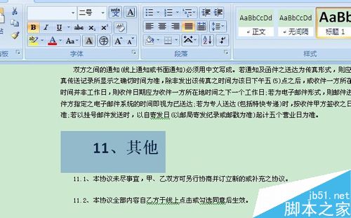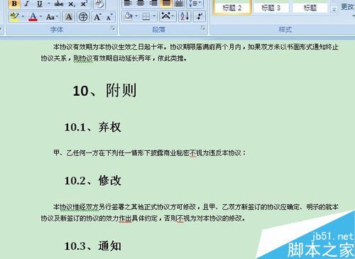 1、打开你的文档,这里以百度经验作者创作作品协议为例,是非常好的例子。看到里面有各个标题及小标题的这种格式,很好做目录。