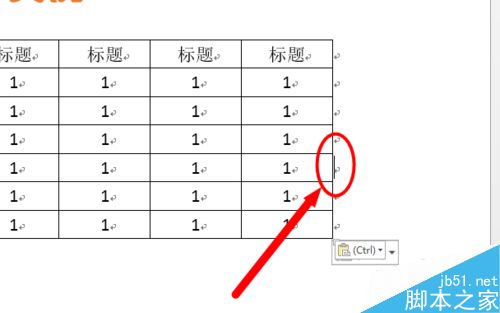 2、拆分表格时,首先将光标放置在要拆分的表格右侧,光标所在的位置将做为新表格的第一行。如图: