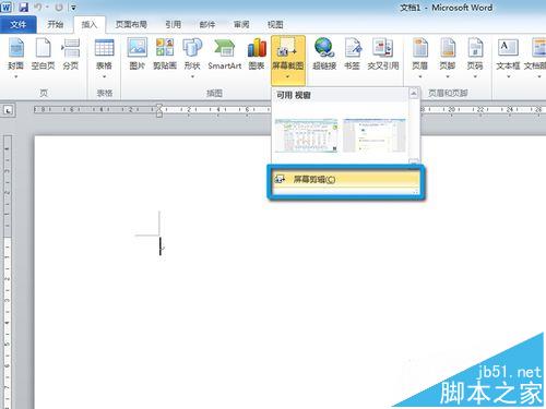 3、然后打开Word界面,在【插入】横栏菜单里找到,屏幕截图,点击绿框里的按键【屏幕剪辑】
