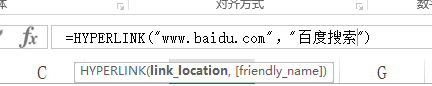 5、如果省略掉可选参数,函数公式会显示默认的文本链接,有可选参数,则显示可选参数的信息。如图所示: