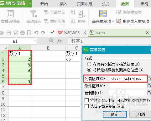 6、选中要复制到的区域,点击“确定”,数据筛选成功