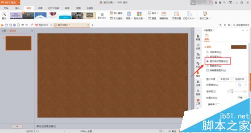 5、点击【背景】功能选项,此时在右侧弹出背景设置选项,选择【图片或纹理填充】,如下图所示。
