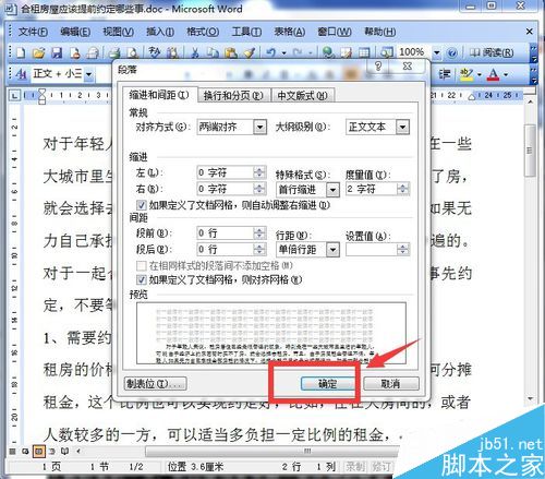 6、在特殊格式中选择首行缩进,并选择值为2个字符,选好后,我们点击右下角的“确定”按钮,如图所示。