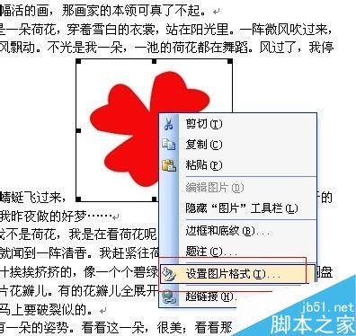 6、在插入的图片上右击,选择设置图片格式