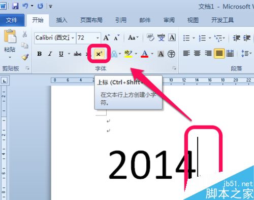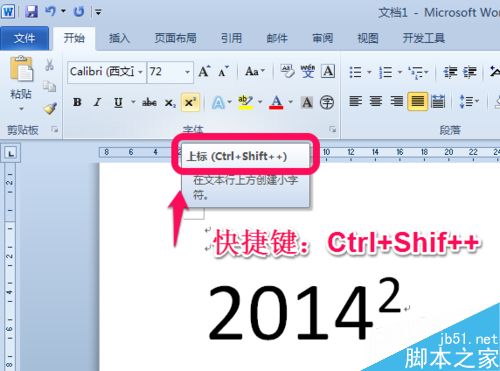 使用快捷键,我们把鼠标放到上标图标处不动,可以看到会显示其快捷键“Ctrl+Shif++”,如图。