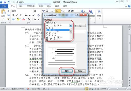 8.跳出来“定义新编号格式”对话框,在“编号样式”中查找需求的编号,如图