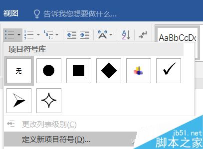 当大家要给一段文档进行编号处理的时候,选中要进行编号的段落,在“开始”选项卡中找到“项目符号”图标,点选下拉菜单(小三角),选择相应的段落标记符号。这个符号也是可以更改的,在“定义新项目符号”中可以切换选择。甚至你可以用图片来当做段落标记使用。