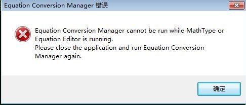 3、注意有时候点击Equation Conversion Manager后弹出窗口说Equation Conversion Manager错误,那是因为你打开了mathtype请将其关闭即可,再次打开就正常了