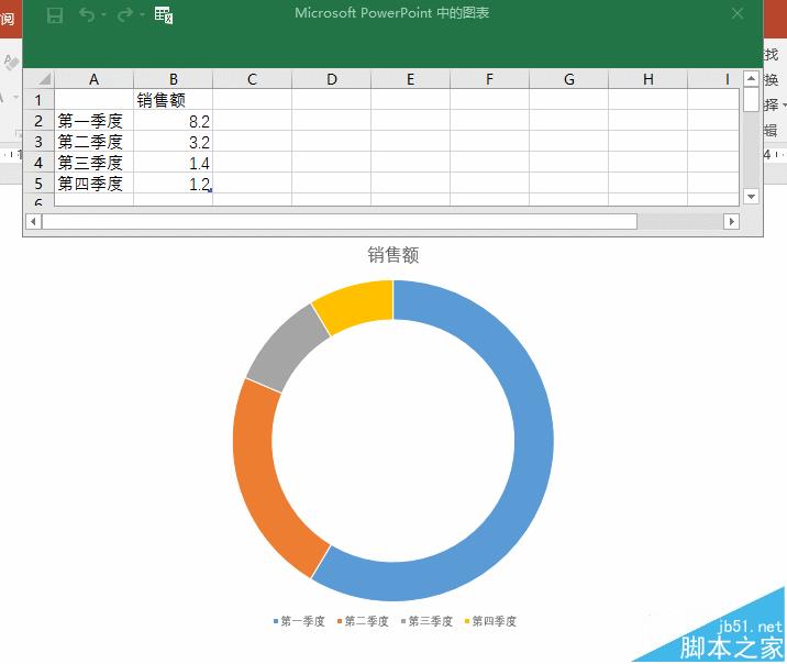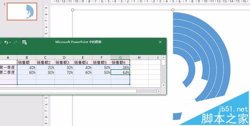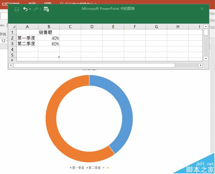 1、新建一个PPT页面,然后插入Excel的环形图。看动图操作: