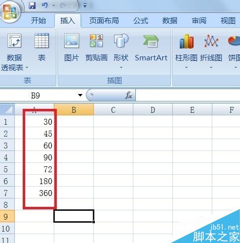打开Excel软件,现在在A列中制作一些数字,如图所示,我们将在B列中将A列数字转换为度数。