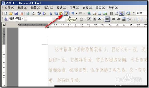 9.然后,在文档上方的工具栏中点“格式刷”工具;