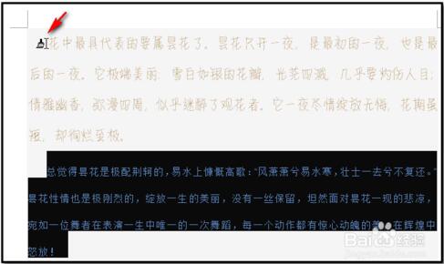 4.光标即多了一个格式刷的图标,然后,光标放在第一段落的开始位置;