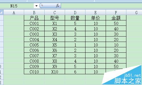 1、我们绘制一张产品表格,统计产品的数量及金额。