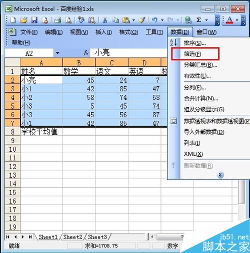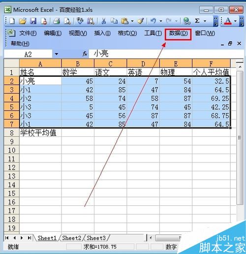 3、在菜单栏里点击“数据” 如图