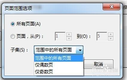 8、PDF中插入的页码还可以按奇数页和偶数页分别插入。这样你就可以按奇数页页码在左边,偶数页页码在右边的方式进行插入。方法是你在设置页码范围对话框中下方有个子集。里面进行选择。插好奇数页后确定,然后再按以上2-6步操作一遍。再次点击添加页面页脚的时候注意点击“添加新的”。