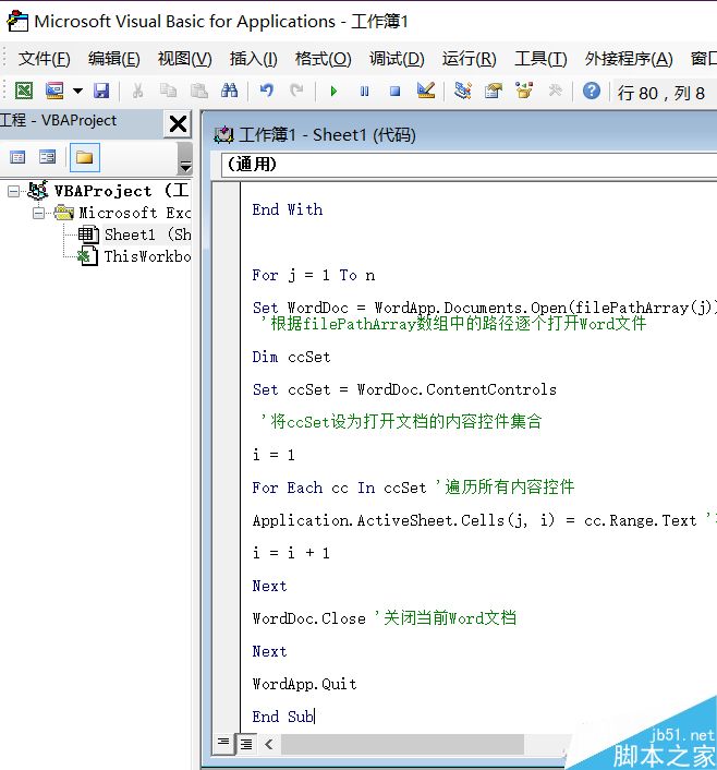 Application.ActiveSheet.Cells(j, i) = cc.Range.Text '将内容控件内容保存至单元格