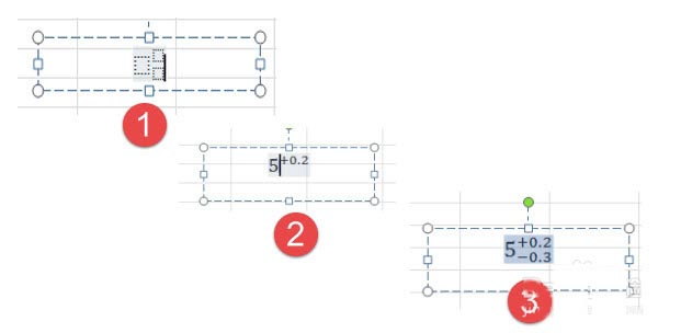 2、在出现的文本框中输入数字,输入时单击鼠标或者方向键激活公差的输入框,我们输入5(步骤1),上偏差+0.2,然后我们输入下偏差,是不是发现问题了,下偏差没有输入点,怎么破?让光标处于(步骤2)的状态,利用方向键切换输入点,发现文本框中没有光标输入点时,便可输入下偏差。