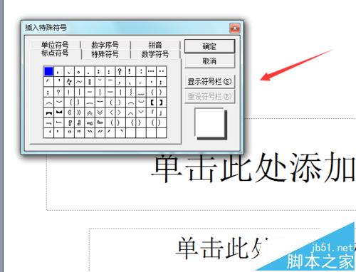 4、点击特殊符号选项,弹出插入特殊符号对话框,如图所示: