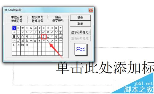 5、在该对话框内找到数学符号选项,并在其内找到平行选项,如图所示:
