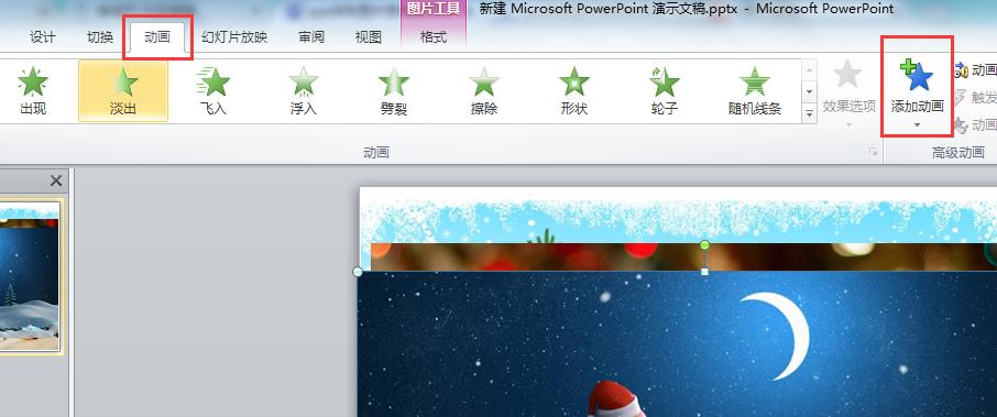 3、点击顶部菜单中的动画,选择添加动画。