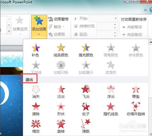 5、设置退出动画,选择想要的退出效果。为插入的每一张图片都设置动画。