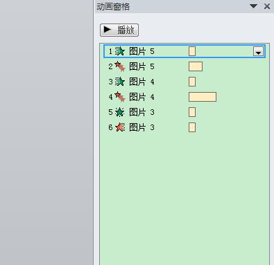 6、在右侧的动画窗格里面,我们可以看到多张图片已经组成了连续的动画效果。