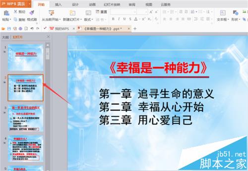 1、打开文档,首先查看想要返回到第几张幻灯片,这里以返回到主目录即第二张幻灯片为例。如图所示: