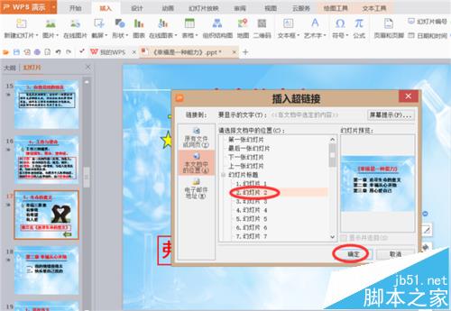 5、选择想要返回到的幻灯片,即本文档中的第二张幻灯片。如图所示: