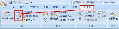 1、在菜单栏上面点击【开发工具】选项,在该选项下,我们点击【宏】按钮,打开宏对话框。