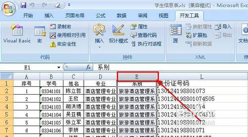 8、在excel中,我们点击想要移动的这一列的列头,也就是图示中的字母E的位置,这样就选中了整个列