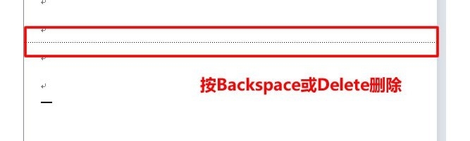 删除方法二:将光标放于空白页的开始处,单机其左侧,当空白页出现一个横条时,按键盘上的“删除键”即可删除空白页。