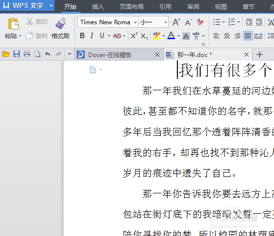 1、首先打开我们需要插入页码的word文档,然后再文档的菜单栏上面寻找“插入”