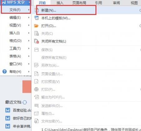 2、点击打开wps软件后,我们选择左边最顶部的“wps文字”选项,然后点击“文件”,在出现的下拉菜单中选择“新建”,如下图所示